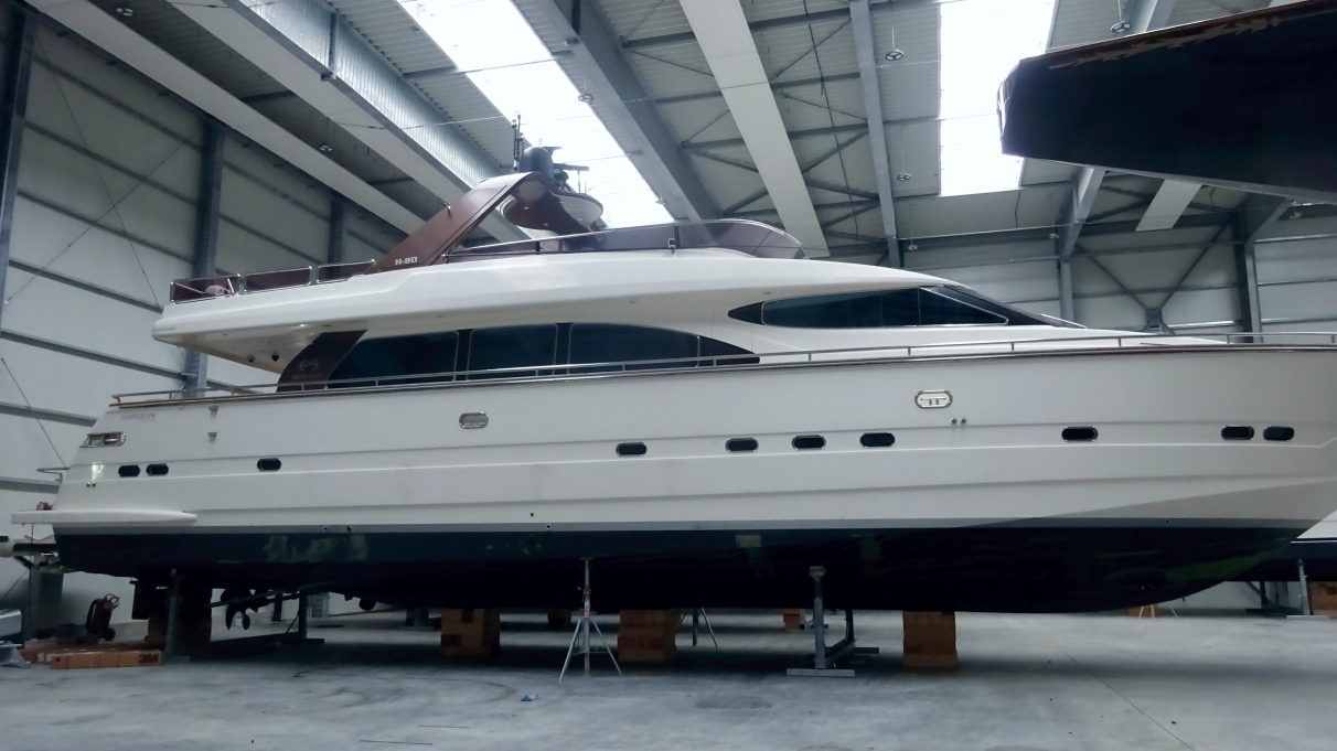 Speziell bei den Yachten Horizon oder auch Elegance kommt es sehr häufig zu über Strapazierung des Gelcoats. Es bilden sich große und lange Risse am Harttop, an den Seiten des Aufbau oder auch am Rumpf.